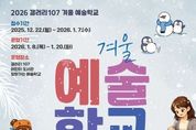 시민행정신문 강갑수 기자 | 전라남도 곡성군이 운영하는 갤러리 107에서 오는 12월 22일부터 내년 1월 7일까지 ‘겨울 예술학교’ 프로그램 참가자를 모집한다고 밝혔다. 예술학교는 매년 방학 기간에 운영하는 예술교육 프로그램으로 갤러리 107을 지역 문화예술의 중심지로 발전시키고 지역 주민들에게는 예술을 즐길 수 있는 기회와 예술적 성취감을 제공하는 것이 목적이다. 모집 대상은 곡성 관내 청소년과 성인 150명을 대상이다. 주요 내용으로는 전문 작가와 함께하는 도자 체험, 자개 공예, 조각보 공예, 입체 조형, 꽃공예, 전통예술, 합죽선 그리기 등 다양한 프로그램 등이 있다. 이번 겨울 예술학교에서는 갤러리 107은 성인 프로그램을 운영하고 찾아가는 예술학교를 통해 곡성어린이 도서관과 협업하는 ‘달리는 상상력’ 말 모형 조형활동과 곡성 관내 어르신들을 위해 직접 마을로 찾아가는 ‘마을로 스미는 예술 한 스푼’ 프로그램을 무료로 진행한다. 자세한 프로그램의 내용은 포스터를 참고하고 모집과 신청은 곡성군청 문화체육과 예술축제팀으로 문의할 수 있다.