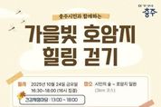 시민행정신문 기자 | 충주시는 걷기 좋은 가을을 맞아 오는 24일 시민의 숲과 호암지 일대에서 ‘가을빛 호암지 힐링 걷기’를 개최한다고 밝혔다. 이번 행사는 깊어가는 가을의 정취 속에서 시민들이 함께 걸으며 건강한 생활습관을 실천하고, 다양한 건강체험 프로그램을 통해 스스로 건강 상태를 확인할 수 있도록 마련됐다. 걷기 행사는 오후 4시 함지길(충주종합운동장 보조경기장 인근)에서 집결해 간단한 스트레칭 후 호암지 일부 구간을 걷고 오는 약 3km 코스로 진행된다. 코스 중간에는 체크포인트 이벤트와 버스킹 공연이 함께 마련돼 재미와 활력을 더하며 누구나 부담 없이 참여할 수 있는 프로그램으로 구성됐다. 본행사에 앞서 오후 1시부터는 ‘건강체험부스’가 운영된다. 이곳에서는 △혈압·혈당·체성분 검사 등 기본 건강 측정 △금연·절주·구강건강 등 건강생활실천 홍보 △치매 예방 캠페인 △풍선아트·양말목공예 등 다양한 참여형 프로그램이 마련돼 온 가족이 함께 즐길 수 있는 체험의 장이 될 전망이다. 특히 올해는‘보행측정장비’를 새롭게 도입해 참가자들의 보행 패턴과 균형 상태를 분석하고