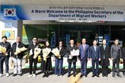 시민행정신문 이세훈 기자 | 거창군은 지난 29일 필리핀 이주노동부(DMW) 한스 레오 칵닥(Hans Leo J. Cacdac) 장관이 군을 공식 방문했다고 밝혔다. 이번 방문은 브로커 없이 운영되는 ‘거창형 계절근로자 운영 모델’의 현장 실태와 필리핀 계절근로자들의 근로·생활 환경을 직접 확인하기 위해 이뤄졌다. 칵닥 장관은 제32차 APEC 회의 참석차 방한했으며, 첫 공식 일정으로 한국내 계절근로자 운영 모범사례로 평가받고 필리핀에서도 주목받고 있는 거창군의 사례를 배우기 위해 군을 찾았다. 거창군 첫 일정으로 구인모 군수를 예방하고 운영현황을 살핀 후, 계절근로자 고용 농가와 일터를 찾아 근로환경을 점검하고 농업근로자 기숙사를 직접 둘러보며 생활환경도 세밀히 살폈다. 장관은 특히 근로자들이 안정적이고 만족스러운 근로환경 속에서 근무하고 있다는 점을 높이 평가했으며, 근로자 복지를 위해 적극적으로 지원해 온 거창군의 노력에 감사의 뜻을 전했다. 현재 군은 필리핀 푸라시와 직접 협약을 체결해 브로커 없이 근로자를 초청하는 방식을 운영해 오고 있다. 이로써 근로자들이 보다 안정적인 환경에서 일할