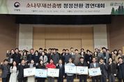 시민행정신문 강갑수 기자 | 울진군은 지난 12월 18일 산림청이 주최한‘소나무재선충병 청정전환 경연대회’에 참석해 최우수상을 수상했다. 이번 경연대회는 소나무재선충병 발생이 경미한 지역이 집단발생지로 악화되지 않도록 초기 단계에서 감시․예찰․방제 체계를 촘촘히 구축하고, 연차별 방제 로드맵을 고도화한 우수 사례를 발굴·확산하기 위해 마련됐다. 대회에는 소나무재선충병 경미 지역 전국 41개 지방자치단체가 참석한 가운데 울진군을 비롯한 서울특별시 서초구, 대구광역시 서구, 경기도 화성시, 강원특별자치도 강릉·삼척시, 충청남도 금산군, 전북특별자치도 부안군, 전라남도 화순·신안·영암군, 경상북도 봉화군, 경상남도 남해·함양군 등 14개 지방자치단체가 소나무재선충병 청정전환 로드맵을 발표했다. 대회 평가 기준은 지방자치단체별로 수립한 로드맵을 중심으로 ▲예찰강화 ▲방제전략의 단계적 목표설정 ▲이동단속 등 확산 차단 체계 ▲ 주민 참여·홍보 방안 등을 종합적으로 평가했으며 울진군은 각 평가 항목에서 높은 점수를 받아 최우수 기관으로 선정됐다. 이용권 산림청 산림재난통제관은“지역 실정을 반영한 실행력 있는