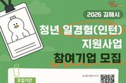 시민행정신문 이세훈 기자 | 김해시는 미취업 청년에게 기업 직무 경험 기회를 제공하는 청년 일경험(인턴) 지원사업 참여기업을 모집한다고 1일 밝혔다. 청년 일경험 지원사업은 청년에게 실무 중심의 직무 경험과 채용 연계 기회를 제공, 기업에는 맞춤형 인재 발굴·육성을 지원하기 위해 올해로 2년째 시행하고 있다. 지난해는 19개 기업에서 청년 24명이 3개월간 일경험(인턴) 프로그램에 참여했으며, 참여자의 과반이 정직원으로 전환되는 성과를 거두며 실질적인 채용 연계 효과를 입증했다. 올해 모집 대상은 김해시 소재 구인 계획이 있는 상시근로자 3명 이상인 기업 25개사다. 선정된 기업이 청년 채용까지 완료할 경우, 청년 일경험 수당(월 150만원/인)과 기업 멘토 수당(월 5만원/인) 3개월분을 지원한다. 참여기업 모집 기간은 오는 14일까지이며, 신청을 희망하는 기업은 김해시청 인구청년정책관을 방문하거나 이메일 또는 팩스로 접수하면 된다. 자세한 사항은 김해시청 누리집 공고문에서 확인할 수 있다. 우미연 김해시 인구청년정책관은 “기업의 채용 트렌드가 경력 중심으로 변화하면서