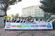 시민행정신문 기자 | 울산광역시교육청은 6일 오전 8시에 울주군 울주명지초등학교 앞 어린이보호구역에서 ‘민·관·경이 함께하는 등굣길 교통안전 홍보 활동(캠페인)’을 펼쳤다. 이번 홍보 활동은 지역사회 협력으로 어린이보호구역 내 교통사고를 예방하고, 학생이 안심하고 학교에 다닐 수 있는 교통안전 문화를 확산하고자 마련됐다. 이날 행사에는 천창수 교육감을 비롯해 김종훈 울산광역시의회 의원, 울산시청, 울주군청, 울산울주경찰서, 강남교육지원청 관계자와 울주명지초등학교 학생과 교직원 등 50여 명이 함께했다. 참여자들은 어깨띠를 두르고 학교 정문에서 출발해 인근 횡단보도와 아파트 단지 주변을 돌며 교통안전 홍보 활동을 벌였다. 무인단속카메라, 신호기, 보도 안전울타리 등 보호구역 내 안전시설을 점검하고, 등굣길 학생들에게 교통안전 홍보 스티커가 부착된 구급함 밴드 세트와 교통안전 안내문을 나눠줬다. 현장에서는 학생들에게 ‘어린이 안전 수칙 일이삼사(일단 멈춤, 이쪽저쪽 살피기, 삼 초 동안 주의, 사고 예방)’ 등의 보행 수칙을 알리고, 시민들에게는 ‘안전속도 5030’, ‘어린이보호구역 횡