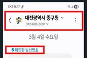 시민행정신문 강갑수 기자 | 대전 중구는 구청에서 발송하는 구정 안내 및 민원처리 관련 문자메시지의 신뢰도를 높이고 스미싱 피해를 예방하기 위해 ‘안심마크서비스(RCS)’를 본격 시행한다고 5일 밝혔다. 안심마크서비스(RCS, Rich Communication Services)는 구청에서 발송하는 문자메시지에 대전 중구의 공식 마크와 기관 명칭을 함께 표시해 발신처가 공공기관임을 인증하는 서비스다. 기존에는 구청에서 발송하는 문자메시지에 발신자의 전화번호만 표시되어 발신처를 명확히 확인하기 어려웠으며, 특히 스미싱(문자메시지를 이용한 금융 사기)피해를 우려한 구민들이 중요한 안내 문자를 열람하지 않는 경우가 많았다. 구는 이러한 불편과 위험을 해소하기 위해 구민들이 발신처를 직관적으로 파악할 수 있도록 안심마크서비스를 도입했다. 이를 통해 행정 서비스에 대한 신뢰도를 높이는 것은 물론 불법 스미싱으로부터 구민들의 소중한 재산을 보호하는 데 큰 도움이 될 것으로 기대하고 있다. 김제선 중구청장은 “이번 서비스 도입으로 구청 발송 문자를 누구나 안심하고 확인할 수 있는 환경을 조성해 구민과의 소통을 더