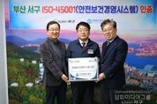 시민행정신문 강갑수 기자 | 부산 서구는 국제 인증 심사기관인 KSR인증원으로부터 국제 표준 안전보건경영시스템(ISO45001) 인증을 획득해 지난 29일 오후 2시 30분 인증서 수여식을 가졌다. ISO45001은 국제표준화기구(ISO)와 국제노동기구(ILO)가 2018년에 제정한 안전보건경영시스템으로 산업재해 예방과 안전한 작업환경 조성을 위한 안전보건관리체계가 국제적 수준에 도달한 기관에 부여하는 국제인증이다. 서구는 외부 전문기관과 합동 위험성 평가를 기반으로 월별 점검 체계를 운영하고 공학적 개선 조치를 시행한 점, 연간 종합계획에 따른 성과측정 및 모니터링 등으로 ISO에서 요구하는 P-D-C-A 기반 선순환 구조가 안정적으로 운영되고 있는 점 등을 인정받았다. 서구는 그동안 근로자와 시민 모두의 안전을 최우선 가치로 삼고 안전보건관리체계 구축을 위해 매뉴얼 제정, 현장 작업환경 점검, 위험성 평가, 내부 심사 등 안전 보건 관리 전 과정을 단계적으로 점검해 현장의 안전관리 수준을 대폭 향상시키며 인증 심사에 대비해 왔다. 공한수 구청장은 “ISO45001 인증은 법적 요구 수준을 충족하