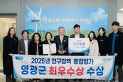 시민행정신문 강갑수 기자 | 영광군은 2025년 전라남도가 주관한 「전라남도 인구정책 우수 시‧군 평가」에서 ‘최우수상’을 수상했다고 밝혔다. 이번 평가는 인구 문제 극복을 위한 지자체의 노력도, 정책 개선, 추진 성과, 우수사례 등을 종합적으로 심사해 우수 시․군을 선정했으며, 영광군은 체계적이고 선도적인 인구정책 추진 성과를 인정받아 최우수상의 영예를 안았다. 특히, 영광군은 지역의 강점을 살린 ‘햇빛과 바람이 주는 기본소득으로 같이 누리는 영광’을 대표 우수사례로 제시하여, 지방소멸 위기 극복과 인구 문제 해결을 위한 효과적인 모델로 높은 평가를 받았다. 합계출산율 6년 연속 전국 1위를 달성한 데 이어 이번 최우수상 수상으로, 영광군은 아이 낳고 살기 좋은 행복한 지역이라는 이미지를 더욱 확고히 하게 됐다. 군 관계자는 “이번 수상은 군민과 함께 만들어 온 인구정책의 성과를 대외적으로 인정받은 결과”라며, “앞으로도 마음 편히 아이 낳고 걱정 없이 키울 수 있도록 생활밀착형 복지정책을 강화하고, 현장에서 바로 체감할 수 있는 돌봄 기반을 확충하는 데 최선을 다하겠다.”라고 밝혔다.
