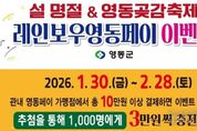 시민행정신문 강갑수 기자 | 충북 영동군은 설 명절과 영동곶감축제를 맞아 지역경제 활성화와 지역화폐 이용 촉진을 위해 ‘설 명절 및 영동곶감축제 레인보우영동페이 이벤트’를 실시한다. 이번 이벤트는 오는 30일부터 2월 28일까지 한 달간 진행되며, 레인보우영동페이 이용자라면 누구나 참여할 수 있다. 이벤트 기간 레인보우영동페이 가맹점에서 10만 원 이상 결제 시 자동으로 응모된다. 영동군은 추첨을 통해 총 1,000명에게 1인당 3만 원씩, 총 3,000만 원의 당첨금을 지급할 계획이다. 당첨자는 3월 중 군청 홈페이지 공지사항을 통해 발표될 예정이다. 군 관계자는 “이번 이벤트를 통해 설 명절과 영동곶감축제 기간 지역 소비를 촉진하고, 소상공인 매출 증대에 실질적인 도움이 되길 기대한다”며 “군민들의 많은 관심과 참여를 바란다”고 말했다. 한편, 레인보우영동페이는 영동군 내 가맹점에서 사용할 수 있는 지역화폐로, 지역자금의 역외 유출을 방지하고 지역경제 선순환을 도모하는 데 기여하고 있다.