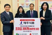 시민행정신문 강갑수 기자 | (재)천안시복지재단은 5일 재주식품이 취약계층을 위한 360만 원 상당의 별난맛김 200개를 후원했다고 밝혔다. 별난맛김은 복지기관과 취약계층 가구에 전달될 예정이다. 한창열 재주식품 대표는 “작은 나눔이지만 지역의 어려운 이웃에게 따뜻한 힘이 되길 바라는 마음으로 후원에 동참했다”며 “앞으로도 지역사회와 함께 성장하는 기업이 될 것”이라고 말했다. 이운형 천안시복지재단 이사장은 “생필품과 식품 후원은 취약계층에게 가장 실질적인 도움이 된다”며 “나눔에 동참해주신 재주식품에 감사드리며, 다양한 기업과 함께 촘촘한 복지안전망을 만들기 위해 노력할 것”이라고 말했다.