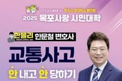 시민행정신문 강갑수 기자 | 목포시는 오는 11월 11일 오후 2시 목포시민문화체육센터에서 한문철 변호사를 초청해 ‘교통사고 안 내고 안 당하기’를 주제로 특강을 연다. 이번 강연은 목포시와 국립목포대학교가 공동 운영하는 '목포사랑 시민대학' 강좌의 일환으로 마련됐다. JTBC ‘한블리(한문철의 블랙박스 리뷰)’로 잘 알려진 한문철 변호사는 교통사고 처리 분야의 대표적인 전문가로, 실제 사고 영상과 판례를 통해 법적 책임 비율, 사고 대처 요령 등 일상에서 도움이 되는 교통법률 정보를 알기 쉽게 전할 예정이다. '목포사랑 시민대학'은 ‘글로컬대학30’과 연계한 관‧학 협력 평생학습 사업으로, 목포시와 국립목포대학교가 함께 추진하고 있다. 상반기 1기 과정에서는 8개 강좌에 145명이 수료했으며, 현재 하반기 2기 과정에는 15개 강좌에 250여 명이 참여하고 있다. 시는 시민의 삶과 배움을 잇는 평생학습 플랫폼으로 발전시켜 나갈 계획이다. 시 관계자는 “이번 강연이 시민들의 교통안전 의식을 높이는 계기가 되길 바라며, 앞으로도 목포사랑 시민대학을 통해 보다 다양하고 유익한