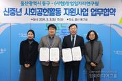 시민행정신문 강갑수 기자 | 울산시 동구가 은퇴한 신중년들의 풍부한 경험과 전문성을 지역사회 자산으로 전환하기 위한 본격적인 행보에 나섰다. 동구는 2월 3일 오후 3시 구청장실에서 (사협)창업일자리연구원(대표 김은석)과 ‘2026년 신중년 사회공헌활동 지원사업’ 추진을 위한 업무 협약을 체결했다. 이날 협약식에는 김종훈 동구청장과 김은석 대표 등 양 기관 관계자들이 참석해 사업의 성공적인 운영을 위한 협력을 약속했다. ‘신중년 사회공헌활동 지원사업’은 50세 이상 70세 미만의 퇴직 인력이 보유한 전문 지식과 노하우를 사회서비스가 필요한 비영리법인, 사회적기업, 공공기관 등에 연계하는 사업이다. 단순 노무형 일자리와 달리, 참여자들이 쌓아온 전문성을 지역사회에 환원한다는 점에서 의미가 크다. 올해 선정된 신중년들은 각자의 전공과 경력을 바탕으로 취약계층 돌봄 서비스, 행정 및 교육 지원, 상담 멘토링, 사회적기업 지원 등 동구의 지역적 특색과 현안에 맞춘 다양한 활동을 수행하게 된다. 동구는 2021년부터 ‘신중년 사회공헌활동 지원 사업을 추진해 오고 있다. 지난해에는 도서관, 노인복