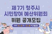 시민행정신문 강갑수 기자 | 청주시는 시민참여예산제의 효율적인 운영과 활성화를 위해 오는 18일까지 제7기 청주시 시민참여예산위원 14명을 공개모집한다. 시민참여예산위원회는 예산에 대한 시민들의 의견을 수렴·집약하고 수립 과정에 참여해 예산안에 대한 의견을 제출하는 기능을 수행한다. 시민이 제안한 사업에 대한 우선순위 결정, 추진 결과 점검 등 과정 전반에 직접 참여하게 된다. 이번 공개모집 인원은 14명으로 읍·면 8명, 동 6명이다. 임기는 2026년 1월 1일부터 2027년 12월 31일까지 2년간이다. 신청 자격은 청주시에 주민등록이 되어 있거나 청주시에 영업소 본점 또는 지점을 둔 사업체의 대표자・임직원, 청주시 소재 기관·단체에 근무하는 사람 등이다. 세금 및 과태료 체납자는 신청할 수 없다. 신청은 시 누리집 고시공고에서 신청서를 내려받아 18일까지 시 예산과, 구청 행정지원과, 읍·면·동 행정복지센터에 방문하거나 이메일, 우편 등을 통해 제출하면 된다. 시는 연말까지 선정해 개별통지할 계획이다. 시 관계자는 “투명하고 효율적인 예산운영
