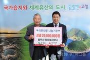 시민행정신문 강갑수 기자 | 고성군은 법무사 황대열 사무소는 10월 28일 고성군청을 방문하여 어려운 이웃을 위해 성금 2,000만 원을 전달했다고 밝혔다. 이번 성금 기탁은 황대열 법무사가 2020년부터 매년 진행해 온 이웃사랑 나눔기부의 일환으로 2025년까지 기탁을 합쳐 총 8,000만 원의 성금을 지역사회에 전하고 있다. 황대열 법무사는 “고성군민의 따뜻한 사랑으로 도·군의원을 세 차례(기초의원 2회, 광역의원 1회) 역임할 수 있었던 것 같다”라며, “그동안 받은 사랑에 보답하고 싶어 매년 지역사회를 위한 나눔을 실천하고 있다. 도움이 필요한 이웃들에게 희망을 전할 수 있어 보람을 느낀다. 앞으로도 나눔 활동을 지속하겠다”라고 말했다. 이상근 고성군수는 “황대열 법무사님의 꾸준한 이웃사랑 나눔 실천에 진심으로 감사드린다”라며, “전달해 주신 성금은 관내 어려운 이웃들에게 소중하게 전달될 것이며, 군에서도 더 많은 이웃이 희망을 가질 수 있도록 최선을 다하겠다”라고 전했다. 한편, 이날 기탁된 성금은 사회복지공동모금회를 통해 고성군 내 저소득층 등 실질적으로 도움이 필요한 이웃들