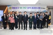 시민행정신문 이존영 기자 | 영등포구의회 의원연구단체 '영등포구 1인 가구 정책연구회'가 27일 오후 4시 영등포구의회 다목적회의실에서 최종보고회를 개최하고 올해 연구 활동을 마무리했다. 이날 최종보고회에는 연구회 소속 의원들(전승관 대표의원·임헌호 간사·김지연·신흥식·양송이·이예찬·최봉희 의원)과 연구용역을 맡은 한국갤럽 관계자 등이 참석해 그동안의 연구성과와 정책 방향 등을 공유했다. 정선희 의장도 자리를 함께하며 연구회의 노고를 격려했다. 정선희 의장은 축사를 통해 "영등포구 1인 가구의 현실적인 지원 방안 모색을 위해 그동안 애써주신 연구회 소속 의원들과 한국갤럽 관계자분들께 감사드린다"며 "오늘 제시되는 연구 성과들이 1인 가구가 소외되지 않고 지역 사회 안에서 건강하게 살아갈 수 있는 정책의 밑거름이 되기를 기대한다"고 밝혔다. 전승관 대표의원은 "1인 가구가 급증함에 따라 맞춤형 정책 마련이 시급하다고 판단해 이번 연구회를 구성했다"며 "한국갤럽과 협력해 FGI와 정책토론회 등을 진행하며, 실제 1인 가구가 겪는 어려움과 정책 수요를 면밀히 파악했다"고 밝혔다. 전승관 대표의원은 "이번