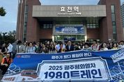 시민행정신문 강갑수 기자 | 광주광역시가 주관하는 ‘2025 광주평화열차 1980 트레인’이 19일 오전 6시30분 효천역을 출발해 경기도 파주시 비무장지대(DMZ)로 향했다. 이번 평화열차에는 340명의 시민이 탑승했으며, 1980년 5월 광주정신을 되새기고 평화와 통일의 가치를 직접 체험할 수 있도록 기획됐다. 지난 6월에 이어 두 번째로 운행하는 이 특별열차는 시민들의 뜨거운 관심 속에 모집 시작 3일 만에 마감됐다. 출발 전 효천역광장에서는 ‘광주가 왔다, 통일이 온다’를 주제로 한 출무식이 열렸다. 고광완 행정부시장이 시민 대표에게 1980년대 열차표를 디자인한 ‘평화행 티켓’을 전달하는 등 의미 있는 시간을 가졌다. 광주평화열차는 효천역에서 임진강역까지 특별기차로 이동하며, 열차 안에서 1980년 5월을 주제로 한 음악다방과 연극 공연 등 시민 참여형 문화 프로그램이 진행된다. 임진강역 도착 후에는 파주시 DMZ 일원에서 안보현장 견학이 이어진다. 고광완 행정부시장은 “세대를 아우르는 다양한 연령층이 참여해 광주의 민주·평화정신을 확산하고 그 의미를 되새기는 새로운 계기가 될 것”이라고