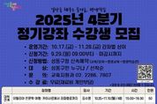 시민행정신문 강갑수 기자 | 서울 성동구가 2025년 4분기 평생학습관 정기강좌 수강생을 오는 9월 29일(월) 오전 9시부터 성동구청 누리집(홈페이지) 신속예약에서 선착순으로 모집한다. 이번 4분기 정기강좌는 대학연계, 디지털, 인문교양, 문화예술, 생활건강 등 구민 삶의 질을 높일 다양한 프로그램으로 구성됐다. 특히, 장애인 인식개선을 주제로 한 특강을 새롭게 마련해 도슨트와 함께 고난을 이겨낸 예술가들을 조명하고, 전문 영화인과 함께 타인의 시선과 감정을 이해하며 공감하는 특별한 시간을 제공한다. 이와 함께 AI와 스마트폰, 주식인사이트, 시사영어, 노르딕워킹 등 실생활에 도움이 되는 실전 강의부터 인문고전, 클래식, 유네스코 세계유산 여행, 글쓰기 등 풍성한 예술·문화 강좌까지 구민들의 다양한 학습 욕구를 충족시킬 예정이다. 성동구 평생학습관은 분기별로 정기강좌를 운영하며, 매번 높은 관심과 참여를 이끌고 있다. 실제로 지난 3분기 정기강좌에는 14개 강좌에 626명의 수강생이 참여해 평생학습에 대한 뜨거운 열기를 확인할 수 있었다. 정원오 성동구청장은 “지적 성장과 자기계발, 공감 능력까지