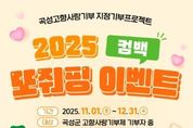 시민행정신문 강갑수 기자 | 곡성군이 11월 1일부터 12월 31일까지 두 달간 곡성군 고향사랑기부제 “컴백 또줘핑~~”이벤트를 진행한다. “컴백 또줘핑” 이벤트는 곡성군이 지역 농·축협 및 농협중앙회 곡성군지부와 협력해 고향사랑기부제를 통해 지역 농산물 홍보와 지역문제 해결에 기여하기 위해 마련됐다. 곡성군 고향사랑기부 공식 인스타그램에 소개된 소액 기부자들의 따뜻한 사연과 지역문제에 대한 공감에 보답하고, 앞으로 기부에 참여할 분들에게도 감사의 마음을 전하고자 하는 취지를 담고 있다. 두 달 동안 10만 원 이상 기부자에 대해 매달 500명을 무작위 추첨해 1만 원 상당의 지역 쌀을 증정한다. 참여 방법은 고향사랑e음 또는 위기브 등 민간 플랫폼을 통해 곡성군에 기부하면 자동으로 응모되며, 당첨자는 개별 통보된다. 곡성군은 인구감소와 고령화 문제 해결을 위해 다양한 지역 맞춤형 사업을 발굴하고 있다. 현재 고향사랑e음을 통해 ‘곡성에 소아과를 선물하세요 시즌2’, ‘유기동물 보호센터 운영 지원’ 등의 지정기부사업을 추진하며 기부금을 모금 중이다. 군 관계자는