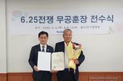 시민행정신문 강갑수 기자 | 부산진구는 2월 5일 부산진구청 부구청장실에서 6·25 전쟁 참전용사 고(故) 김우규 상병의 유가족에게 무성화랑무공훈장을 전수하는 뜻깊은 행사를 개최했다. 이번 훈장 전수는 국방부가 추진하는‘6·25전쟁 무공훈장 주인공 찾기’사업의 일환으로, 전쟁 당시 무공훈장 수여가 결정됐으나 전장의 긴박한 상황으로 실제로 전달되지 못했던 훈장을 유가족에게 뒤늦게나마 전하는 국가보훈 사업이다. 고(故) 김우규 상병에게 수여된 무성화랑무공훈장은 대한민국 네 번째 무공훈장으로, 전시 또는 이에 준하는 비상사태에서 전투에 참가하거나 적과 접촉한 지역에서 직무를 수행하며 뛰어난 무공을 세운 이에게 수여된다. 이날 행사에 참석한 허남식 부산진구 부구청장은 “조국을 위해 헌신하신 고(故) 김우규 상병님의 숭고한 희생과 애국심을 기억하며, 유가족께 무공훈장을 직접 전해 드릴 수 있어 매우 뜻깊게 생각한다.”라고 말했다. 고인의 아들 김상도 씨는 “늦었지만 아버지의 명예를 되찾아 주셔서 진심으로 감사드린다”고 소감을 밝혔다.