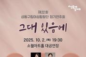 시민행정신문 이존영 기자 | 서울 성동구는 오는 10월 2일 저녁 7시 30분 소월아트홀에서 성동구립 여성합창단 '제22회 정기 공연'을 개최한다고 밝혔다. 공연 부제는 '그대 있음에'로 가을밤, 구민들에게 사랑과 위로의 하모니를 선사할 예정이다. 1991년 창단한 성동구립 여성합창단은 성동구를 대표하는 문화사절단으로, 2025년 제3회 남도전국합창대회 대상 수상 등 다수의 외부 무대에서 실력을 인정받고 있다. 올해 제22회 정기공연은 구민들에게 수준 높은 문화예술 향유 기회를 제공하고, 합창단원 간의 화합을 다지는 특별한 자리로 마련됐다. 특히 이번 공연에는 테너 신지한과 감성 클래식 앙상블 ‘아우름 트리오’가 협연진으로 무대에 올라, 한층 풍성한 음악적 감동을 선사할 예정이다. 또한, 합창단의 진한 감성을 느낄 수 있는 ‘그대 있음에’를 비롯해 제주 바다의 정취를 전달하는 ‘이어도사나’ 등 아름다운 합창과 더불어, 세계적으로 사랑받는 ‘리베르탱고’, ‘10월의 어느 멋진 날’에 등 클래식과 대중음악 등 다채로운 무대를 선보일 예정이다. 정원오 성동구청장은 “깊어가는 가을밤, 멋진 하모니로 일상의