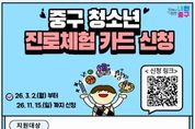 시민행정신문 강갑수 기자 | 서울 중구가 지역 청소년들의 다양한 진로 탐색과 문화·예술 체험 기회를 확대하기 위해 ‘청소년 진로체험카드’를 지급한다. 지원 대상은 중구에 주민등록을 둔 중학교 1학년 학생과 13세 학교 밖 청소년이다. 관내에 체류지를 둔 외국인 청소년도 포함된다. 상·하반기 각 10만 원씩, 연간 최대 20만원이 포인트 카드 형태로 지급된다. 카드는 12월 15일까지 지정 가맹점에서 사용해야 하며, 기간 내 사용하지 않은 포인트는 소멸된다. 청소년들은 지급받은 카드를 활용해 진로·직업 체험 프로그램, 문화·예술 활동, 공연·전시 관람, 체육시설 이용, 서점 등 지정 가맹점에서 자유롭게 사용할 수 있다. 가정 형편과 관계없이 누구나 다양한 체험에 참여할 수 있도록 했다. 중구가 지난해 9월부터 12월까지 시범 운영한 결과, 진로체험과 상담, 영화·공연·전시 관람, 체육·문화센터, 서점 등에서 총 1,774건(사용률 89%)이 이용되는 등 높은 만족도를 보였다. 올해는 신청 절차를 한층 개선했다. 중구청 홈페이지(AI내편중구 홈페이지 ▶ ‘진로체험’ 검색)뿐 아니라 거주지 동 주민센터