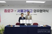 시민행정신문 강갑수 기자 | 종로구는 9월 23일 서울과학고등학교와 ‘서울과학고 영재교육원 종로구민 특별선발 업무협약’을 맺었다. 협약에 따라 서울과학고는 매년 영재교육원에서 구민 또는 관내 중학교 재학생 20명을 특별 선발하고, 종로구는 영재교육원 학생·학부모의 부담을 줄이기 위해 수익자부담금을 교육경비로 지원한다. 이로써 학생들은 서울과학고의 첨단 학습 시설과 우수한 교육 자원을 경험하며 과학적 사고력과 문제 해결 능력을 키우고, 진로 탐색의 기회도 가질 수 있을 것으로 기대된다. 아울러 양 기관은 초등학생 멘토링 사업이나 방학 캠프 등을 함께 기획·운영할 계획이다. 정문헌 구청장은 “앞으로도 종로 청소년이 과학과 수학을 즐겁게 배우고 자신감을 가질 수 있도록 아낌없이 지원하겠다”라고 밝혔다.