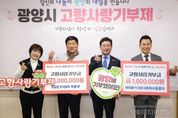 시민행정신문 이세훈 기자 | 광양시는 6일 광양시청에서 광양 출신 향우 2명이 고향에 대한 애정과 응원의 마음을 전하는 ‘고향사랑기부금 전달식’을 개최했다고 밝혔다. 이날 전달식에는 미라클YT펌프 원영태 대표와 광양본가기정떡 박용무 대표가 참석해 각 100만 원씩 총 200만 원의 고향사랑기부금을 시에 전달했다. 이번 기부는 지방재정 확충과 지역경제 활성화를 목적으로 추진되고 있는 고향사랑기부제의 취지에 공감한 기부자들이 자발적으로 참여해 더욱 의미를 더했다. 특히 원영태 대표는 3년 연속으로 고향사랑기부제에 동참하며 꾸준한 기부 실천을 통해 지역 사랑과 나눔 문화 확산에 앞장서고 있다. 원영태 대표는 “고향 광양에 대한 마음을 담아 지역 발전에 조금이나마 보탬이 되고자 참여했다”며 “이번 기부가 고향사랑기부제의 취지를 널리 알리고, 더 많은 시민과 향우의 참여로 이어지는 계기가 되길 바란다”고 말했다. 박용무 대표는 “지역과 함께 성장해 온 만큼, 앞으로도 지역과 상생할 수 있는 다양한 방법을 지속적으로 고민하겠다”고 밝혔다. 광양시 관계자는 “광양 발전을 위해 늘 아낌없