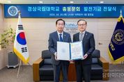 시민행정신문 강갑수 기자 | 경상국립대학교 총동문회와 재경총동문회는 10월 28일 모교에 발전기금 1000만 원을 기부했다. 이날 기부한 발전기금은 총동문회에서 500만 원, 재경총동문회에서 500만 원을 출연한 것이다. 경상국립대학교 국제처는 이날 오후 2시 가좌캠퍼스 대학본부 3층 접견실에서 발전기금 전달식을 개최했다. 행사에는 권진회 총장, 오재신 국제처장, 황정숙 국제협력과장과 총동문회 회장, 정대인 사무총장, 박시진 사무차장, 정종헌 홍보국장, 강영추 기획처장 등 10여 명이 참석했다. 이로써 경상국립대학교 총동문회는 그동안 모교 발전기금 7000만 원을 기부했고, 재경총동문회는 1460만 원을 기부했다. 이번 발전기금은 총동문회와 재경총동문회가 뜻을 모아 대학과 학생들을 위해 의미 있는 후원을 실천하자는 데 공감하면서 이루어진 귀한 후원금이다. 총동문회는 “이번 기부가 선후배 간의 유대감을 강화하고, 모교 발전에 보탬이 되는 계기가 되기를 바란다.”리고 전했다. 총동문회장은 “경상국립대학교의 발전은 곧 동문 모두의 자부심”이라며 “이번 기부가 대학 발전의 밑거름이 되고, 후배들에게 용기와