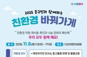 시민행정신문 강갑수 기자 | 서울 중구는 오는 11월 8일 오후 1시부터 5시까지, 다산어린이공원에서 ‘2025년 중구민과 함께하는 친환경 바꿔가게’ 행사를 개최한다. 이번 행사는 일상 속에서 버려지는 물건의 가치를 다시 발견하고, 자원순환과 나눔의 문화를 확산시키기 위해 마련됐다. 재활용 장터, 업사이클링 체험, 환경 캠페인, 공연 등 다채로운 프로그램이 준비돼 있어 누구나 즐겁게 참여할 수 있다. 먼저‘재활용 장터’에서는 주민들이 직접 판매자로 나서, 깨끗하지만 사용하지 않는 물건들을 판매하거나 물물교환을 진행한다. 사전 신청을 마친 15개 팀의 주민 판매자가 참여해 의류·생활용품·육아용품 등 다양한 물품을 선보인다. 또한 버려지는 자원을 새롭게 탄생시키는 체험부스도 열린다. ‘플라스틱 뚜껑 랜드’부스에서는 병뚜껑을 조립해 작품을 만들고, 완성품은 전국 최초 쓰레기 연구소인 ‘새롬’에 전시할 예정이다. ‘책갈피가 된 비닐’ 부스에서는 버려진 비닐을 책갈피로 변신시키고, ‘새활용 키링 만들기’와 ‘커피박 샴푸바 만들기’등 다양한 체험이 진행돼 자원순환의 의미를 새긴다. 지역 기관들도 재활용과 환경