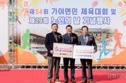 시민행정신문 강갑수 기자 | 합천군은 26일 가야면 해인중학교 운동장에서 열린 제54회 가야면민체육대회 및 제29회 노인의 날 기념행사 현장에서 부산·울산지역 향우가 고향사랑기부금 600만원을 기탁했다고 밝혔다. 이날 기탁은 가야면 체육회가 주최한 가야면민체육대회 행사 중 진행됐으며, 부산향우와 울산향우(익명 요청)가 각각 300만원씩 고향사랑기부금을 전달했다. 기탁식에는 두 향우가 직접 참석하지 못했으며, 최덕규 전 가야농협장과 임재후 가야면체육회장이 대신 전달해 뜻깊은 마음을 전했다. 기탁된 성금은 합천군 고향사랑기금으로 적립돼 지역 복지증진과 주민 생활여건 개선을 위한 사업에 사용될 예정이다. 김윤철 합천군수는 “타지에서도 늘 고향을 잊지 않고 따뜻한 정성을 보내주신 향우 여러분께 깊이 감사드린다”며 “소중한 기탁금은 지역사회를 위해 의미 있게 활용하겠다”고 전했다. 고향사랑기부제는 개인이 주소지를 제외한 지방자치단체에 연간 2,000만 원 이하의 금액을 기부할 수 있으며, 세액공제(10만 원까지 전액, 초과분 16.5%)와 함께 30% 상당의 답례품(지역특산물·합천사랑상품권