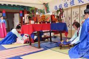 시민행정신문 강갑수 기자 | 합천군 초계향교에서는 26일 오전 10시 초계향교 건립 이후 최초로 명륜당 앞에서 전통혼례가 열렸으며, 행사는 100여 명의 하객과 면민의 축하 속에서 진행됐다. 행사 순서는 신부를 태운 전통가마와 신랑 입장과 함께 풍물단의 길놀이 행사가 이어졌으며, 예식에서는 전안례(奠鴈禮), 교배례(交拜禮), 합근례(合巹禮) 순으로 변치 않는 사랑의 약속, 부부로 처음 나누는 인사, 부부가 하나 된다는 합환주를 마시며 전통혼례가 이어졌다. 이날 혼례는 단순한 결혼식을 넘어 변화하는 현대 사회에서 사라져가는 우리의 소중한 문화를 재현하고 지역사회에 전통의 의미를 되살리는 소중한 시간이 됐다. 한편 초계향교 문성화 전교는 전통혼례 준비를 위하여 물품구입과 전통혼례 준비 등 많은 부분을 직접 준비했으며, 이날 전통혼례에서 집례를 맡아 전통문화를 보존하고 재현하는 것에 일익을 담당했다.