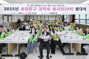 시민행정신문 강갑수 기자 | 서대문구는 관내 대학 재학생과 거주 대학생 50여 명이 참여하는 ‘대학생 봉사단 U9’가 최근 발대식을 갖고 출범했다고 23일 밝혔다. ‘U9’란 명칭은 서대문구 내 소재한 9개 대학을 상징한다. 단원들은 청년세대의 창의적이고 자발적인 참여를 바탕으로 ▲청소년 학습·진로 멘토링 ▲환경 개선 및 기후 위기 대응 ▲이웃사랑 실천 활동 등을 펼칠 예정이다. 이달 20일 구청 기획상황실에서 열린 발대식은 봉사단 선서와 팀별 네트워킹 프로그램 등으로 진행됐다. 단원들은 선서를 통해 ‘나눔과 실천으로 더불어 사는 따뜻하고 행복한 지역사회를 만들어가겠다’는 의지를 다졌다. 또한 김난희 스위치온 대표로부터 청년 봉사 프로젝트 사례를 소개받고 자신들이 직접 기획하고 참여할 수 있는 봉사활동 방향을 논의했다. 발대식에 함께한 이성헌 서대문구청장은 “대학생들의 활기찬 에너지와 창의적 아이디어가 따뜻한 지역사회를 만드는 큰 힘이 될 것으로 믿으며 청년이 주도하는 다양한 봉사활동을 지속해서 지원하겠다”고 말했다.