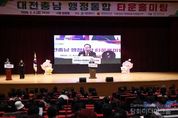 시민행정신문 강갑수 기자 | 대전시는 6일 오전 10시 대전시청 3층 대강당에서 ‘대전․충남 행정통합 타운홀미팅’을 개최하고, 행정통합 특별법안을 둘러싼 주요 내용과 쟁점에 대해 시민들과 직접 소통하는 시간을 가졌다. 이번 행사는 최근 국회에 제출된 행정통합 특별법안에 대한 시민 이해를 높이고, 다양한 의견을 폭넓게 수렴하기 위해 마련됐다. 주민, 시의원, 민관협의체 위원, 전문가 등 약 500여 명이 참석했다. 행사는 지난해 국회에 발의된 특별법안과 최근 제출된 특별법안을 중심으로 주요 내용과 쟁점, 법안 간 차이점을 설명하는 것으로 시작됐다. 참석자들은 행정통합이 지역 행정체계와 주민 생활에 미칠 영향에 대해 설명을 듣고, 법안의 핵심 사항을 공유하는 시간을 가졌다. 이어진 질의응답 시간에는 이장우 대전시장과 대전․충남 행정통합 민관협의체 공동위원장이 함께 자리해 시민들의 질문에 답했다. 시민들은 재정 특례, 행정 권한, 지방의회 역할, 주민 참여 방식 등 다양한 분야에 대해 의견을 제시하며 활발한 논의를 이어갔다. 이장우 대전시장은 “행정통합은 단기적인 이해관계를 넘어 지역의 미래