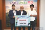 시민행정신문 강갑수 기자 | 한국양봉협회 무주군지회가 지난 25일 (재)무주군교육발전장학재단에 장학금 259만 원을 기탁했다. 이날 기탁한 장학금은 제29회 무주반딧불축제에서 농특산물 판매장을 운영하면서 얻은 벌꿀 판매 수익금으로 알려져 훈훈함을 더하고 있다. 송재철 지회장은 “지역 대표 축제에서 얻은 수익금인 만큼 의미 있는 일에 쓰고 싶어 회원들이 마음을 모았다”라며 “양봉협회 회원들이 무주의 청정 환경에서 직접 채취한 고품질 벌꿀을 소개·판매하고 얻은 수익금을 지역사회에 환원한다는 점에서 큰 보람을 느낀다”라고 밝혔다. 이어 “앞으로도 협회 차원에서 지역사회와 함께하는 나눔 활동을 꾸준히 이어갈 것”이라고 밝혔다.