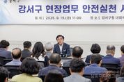 시민행정신문 강갑수 기자 | 서울 강서구는 19일 구청 대회의실에서 ‘현장업무 안전 실천 서약식’을 열고 안전사고 없는 사업장 조성을 위한 실천 의지를 다졌다. 구는 지난 18일 청소 용역업체 종사자 사망 사고가 발생함에 따라 안전한 사업현장을 조성하겠다는 결연한 의지를 다지기 위해 마련됐다. 서약식에는 청소, 공원녹지, 도로, 하수, 공공시설 등 구의 현장 업무를 처리하는 용역업체 대표자 및 관계자 90여 명이 참석했다. 이날 진 구청장을 비롯한 참석자들은 서약서에 서명하며 산업재해 예방을 위한 실천 의지를 함께 다졌다. 서약서에는 ▲강서구민과 종사자의 생명 및 안전 최우선 ▲안전보건관리체계 구축으로 안전한 사업장 조성 ▲현장 안전수칙 준수 ▲안전문화 확산을 위한 전직원 안전교육 지속 실시 등 안전보건 의무이행을 위한 실천 항목이 담겼다. 서약식에 이어 현장에서 발생할 수 있는 사례를 중심으로 산업재해 예방 교육도 진행됐다. 진 구청장은 “안타까운 사고가 발생해 구청장으로서 너무나 참담한 마음이다. 구에서는 지금의 상황을 매우 엄중하고 비상하게 인식하고 있다”며 “유사사고