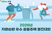 시민행정신문 김학영 기자 | 광주광역시 서구가 관내 100세대 이상 공동주택 204개소를 대상으로 ‘2026년 자원순환 우수 공동주택 경진대회’를 개최한다. 서구는 올바른 분리배출과 음식물쓰레기 감량 문화 정착을 위해 2013년부터 경진대회를 추진해 오고 있다. 서구는 올해 3월부터 10월까지 ▲음식물류 폐기물 감량실적(70점) ▲폐건전지·폐형광등 수거 실적(10점) ▲재활용품 분리배출 실태(10점) ▲자원순환 실천 주민 참여도(10점) 등을 종합적으로 평가해 오는 11월 우수 공동주택 10곳을 선정하고 총 2000만원의 포상금을 차등 지급할 계획이다. 참여를 희망하는 공동주택은 3월13일까지 서구청 누리집 공지사항의 관련 서류를 준비해 서구청 자원순환과에 방문하거나 전자우편 등으로 제출하면 된다. 서구는 3월 중 참여자 대상 사업설명회를 열어 경진대회 추진 절차와 실적 평가 기준 등 자원순환 실천 방안을 안내할 예정이다. 이판구 자원순환과장은 “자원순환 우수 공동주택 경진대회를 통해 주민 참여를 기반으로 자원순환 실천 문화가 지속적으로 확산될 수 있도록 노력하겠다”고 말했다. 한편 서