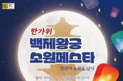 시민행정신문 강갑수 기자 | 추석 전날 밤, 익산 백제왕궁이 시민들의 소망을 담은 소원등으로 환히 빛난다. 익산시는 추석 전날인 오는 10월 5일에 유네스코 세계유산 백제왕궁(왕궁리 유적)에서 '한가위 백제왕궁 소원페스타 : 천년의 소원을 담다'를 개최한다고 25일 밝혔다. 참여는 사전 예약과 현장 접수 모두 가능하다. 사전 예약은 오는 29일 오전 10시부터 마수리늘배움협회 누리집을 통해 선착순 800명을 접수하고, 현장에서도 200명을 선착순으로 모집한다. 이번 축제는 시민들이 직접 적은 소원문을 '소원등'에 달아 백제왕궁 밤하늘을 밝히며, 가족과 이웃이 함께 소망을 나누는 특별한 시간으로 꾸며진다. 소원등은 근심을 내려놓고 평안과 희망을 기원하는 상징으로 달맞이, 연등 문화 등의 풍속과 맞닿아 있다. 이에 가족의 안녕을 기원하고 풍요에 감사하는 추석의 의미를 한층 깊게 할 것으로 기대를 모은다. 행사는 오후 5시 소원문 쓰기로 시작된다. 이어 △백제의 마술사 공연 △버블쇼 △사물놀이패와 어우러지는 백제왕궁마을장터 재담마당극 등 다채로운 무대가