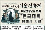 시민행정신문 기자 | (재)아산문화재단은 '제65회 아산 성웅 이순신 축제'를 맞아 성웅 이순신 장군의 충효애 정신과 숭고한 뜻을 기리고 계승하기 위한 ‘이순신 장군 시·서·화 전국대회’를 개최하고 전국의 참가자를 모집한다. 이순신 장군 시·서·화 전국대회는 단순한 경연을 넘어, 이순신 장군의 삶과 정신을 오늘의 시선으로 다시 바라보고 이를 시·서·화라는 다양한 예술 언어로 표현하는 특별한 자리로 마련됐다. 대회는 ▲이순신 장군 창작시 낭송대회 ▲충무공탄신기념 백일장 ▲난중일기 사생대회 ▲난중일기 서예 필사대회 등 총 4개 분야로 구성되며, 2026년 5월 1일부터 3일까지 현충사 고택 및 구본전 일원에서 순차적으로 개최된다. 참가 신청은 3월 16일부터 시작되며, 이메일 또는 축제 홈페이지를 통한 접수로 가능하다. 자세한 사항은 (재)아산문화재단 홈페이지 공고를 통해 확인할 수 있다. 참가자들은 현충사를 배경으로 한 편의 시 낭송, 한 장의 그림, 한 획의 글씨로 이순신 장군의 정신을 표현하고, 시·서·화를 통해 그 가치를 계승하는 뜻깊은 시간을 경험하게 될 것이다. (재)아산문화재단(대표이사: