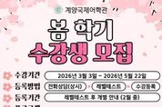 시민행정신문 강갑수 기자 | 인천 계양국제어학관이 2026년 봄 학기 프로그램 수강생을 모집한다고 밝혔다. 수강 기간은 3월 3일부터 5월 22일까지이며, 전화 상담 후 레벨테스트를 거쳐 수강 등록이 진행된다. 등록 일정은 레벨테스트 이후 개별 안내될 예정이다. 정규 프로그램 레벨테스트는 오는 2월 10일 오후 3시에 계양국제어학관 누리집을 통해 온라인으로 진행되며, 선착순으로 접수 마감된다. 모집은 계양구민을 우선으로 한다. 정규 프로그램은 초·중등을 대상으로 운영되며, 월·수·금반은 4회, 화·목반은 23회 과정으로 진행된다. 교육과정은 단계별 영어 수업(Basic 1~MA)으로 운영되며, 최상위 과정인 알파고(Alphago)반이 포함된다. 원어민 및 내국인 강사의 교차 수업 방식으로 진행되며, 무상 통학버스를 운영한다. 토요 프로그램은 초·중등을 대상으로 운영되며, 1시간 수업은 11회 과정, 2시간 수업은 11회 과정이다. 프로그램은 스토리텔링, 리딩어드벤처스, 일본어, 컬러풀 잉글리시, 영어과학 과정으로 구성된다.