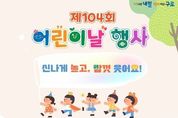 시민행정신문 이존영 기자 | 구로구가 제104회 어린이날을 맞아 오는 5월 2일 고척근린공원에서 어린이와 가족, 지역주민이 함께 즐길 수 있는 ‘어린이날 행사’를 개최한다. 이번 행사는 ‘신나게 놀고, 맘껏 웃어요!’를 슬로건으로, 어린이들이 마음껏 뛰놀며 가족과 함께 즐거운 시간을 보낼 수 있도록 다양한 공연과 체험 프로그램을 마련했다. 행사는 오전 10시부터 오후 4시까지 진행되며, 어린이와 지역주민 등 온 가족이 함께 즐길 수 있는 축제의 장이 될 전망이다. 먼저 오전 10시에는 구구단합창단, 밴드동아리, 댄스동아리 등 식전 공연이 펼쳐지며 활기찬 분위기 속에서 행사의 막을 연다. 이어지는 기념식에서는 모범어린이 표창 수여와 백일장·그림공모전 시상, 아동권리헌장 낭독 등이 진행되며 어린이날의 의미를 되새기는 시간을 갖는다. 이후 태권도 시범공연과 마술 공연 등 다채로운 축하공연이 이어져 관람객들에게 즐거운 볼거리를 제공한다. 오전 10시부터 오후 4시까지 행사장 곳곳에서는 △전시마당 △놀이마당 △체험마당 △먹거리마당이 운영된다. 전시마당에서는 2026년 어린이날 우수작