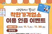 시민행정신문 강갑수 기자 | 아산시가 오는 11월 1일부터 11월 30일까지 한 달간 착한가격업소 이용 인증 이벤트를 추진한다. 이번 이벤트는 11월 30일 종료되는 ‘민생회복 소비쿠폰’ 사용 기간에 맞춰 시민이 체감할 수 있는 소비 활성화 분위기를 이어가고, 지역 소상공인과의 상생을 도모하기 위해 마련됐다. 참여 방법은 아산시 내 착한가격업소를 이용한 후 영수증을 수령해 시가 운영하는 네이버폼 인증 페이지에 영수증 사진을 게시(업로드)하고, 아산시 공식 인스타그램 이벤트 게시물에 ‘인증 완료’ 댓글을 작성하면 참여가 완료된다. 인증이 확인된 선착순 50명에게는 아산페이 1만 원이 지급된다. 유종희 아산시 지역경제과장은 “이번 이벤트를 통해 시민이 직접 참여하며 지역경제 선순환의 주체가 되는 계기를 마련할 것”이라며 “아산페이를 통한 지역화폐 결제 확대와 합리적 소비문화 확산에 기여할 것으로 기대한다”고 밝혔다. 또한, 시는 “민생회복 소비쿠폰은 11월 30일 사용이 종료되며, 이후에는 사용이 불가능하다”며 “기한 내 적극적인 사용으로 지역 소비 활성화에 동참해 달라”고 당부했다 한편,