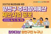 시민행정신문 강갑수 기자 | 양천구는 2027년 예산 편성 과정에 구민의 목소리를 반영하기 위해 ‘주민참여예산 제안사업’ 공모를 오는 5월 15일까지 진행한다고 밝혔다. ‘주민참여예산제’는 예산 편성 과정에 구민이 직접 참여해 지역에 필요한 사업을 제안하고 결정함으로써 예산 운영의 투명성을 높이고 실질적인 재정 민주주의를 실현하는 제도다. 구는 주민참여예산제의 실효성을 높이기 위해 올해부터 운영 방식을 대폭 개선했다. 제안 이후 최종 선정까지의 모든 과정을 단계별로 공개하고, 제안자에게 개별 안내를 제공해 진행 상황을 투명하게 공개한다. 또 부서 검토 단계에서 제안자와의 소통을 강화해 사업을 구체화하고 채택 가능성을 높일 계획이다. 이번 공모의 총예산 규모는 18억 원이며, ‘일반 제안사업’ 15억 원과 ‘주민자치회 제안사업’ 3억 원 등 2개 분야로 나뉜다. ‘일반 제안사업’은 생활 속 불편 해소를 위한 주민 밀착형 사업, 복리 증진 및 지역경제 활성화 사업, 청년 문제 해결 사업, 청소년 학습·진로 사업 등을 대상으로 하며, 사업 1건당 최대 2억 원까지 편성 할 수 있다. 참여는