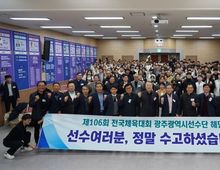 시민행정신문 장규호 기자 | 광주광역시선수단이 부산광역시 일원에서 열린 제106회 전국체육대회에서 종합 11위의 성적으로 목표를 초과 달성하며 7일간 대장정의 일정을 마무리했다. 광주광역시체육회(회장 전갑수)는 검도 등 50개 종목 1,439명의 선수단이 참가한 이번 제106회 부산 전국체전에서 금메달 53개, 은메달 48개, 동메달 62개 등 총 163개의 메달과 32,640점이라는 고득점으로 종합 11위를 달성해 한꺼번에 3마리의 토끼를 잡았다. 특히 32,640점은 제100회 서울 전국체전 이후 연속해서 3만 점대를 유지한 결과로, 고・대・일반부 및 단체・개인・기록 종목의 경기력이 고르게 상승했다는 방증이자 광주체육 발전의 청신호다. 또 경쟁 시도였던 전남과 전북 등을 제치고 달성한 성과라 큰 의미가 있다. 시체육회는 이번 체전 성과로 ①경기력 및 종합순위 상승을 위한 선수·지도자의 근성 노력, ②신기록 수립(7개), 다관왕(8명) 및 다연패(15개 팀・선수) 배출, ③1,000점대 획득 종목 증가(12개)를 꼽았다. 광주 여자 농구의 자존심 수피아여고는 29년 만에 우승을 차지하