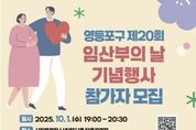 시민행정신문 이존영 기자 | 영등포구가 오는 10월 1일 오후 7시, 시립문래청소년센터 달촌공연장에서 ‘제20회 임산부의 날 기념행사’를 연다고 밝혔다. 행사는 임신과 출산의 소중함을 되새기고, 임산부와 가족이 함께 힐링할 수 있는 특별한 자리로 마련했다. 첫 순서는 순천향대학교 부천병원 산부인과 김태희 교수의 특강이다. ‘출산 준비부터 회복까지, 건강 체크리스트’를 주제로 ▲출산 전 준비사항 ▲산모 건강 관리법 ▲출산 직후 회복 요령 ▲가족이 함께할 수 있는 지원 방법 등 실질적이고 유익한 정보를 전한다. 이어 팝페라 듀엣 ‘뚜뚜빠빠’가 무대에 올라 ‘넬라 판타지아’, ‘오 솔레미오’ 등 친숙한 선율을 선사하며 따뜻한 위로와 감동을 선사한다. 행사장에는 다채로운 체험부스도 운영된다. ▲1년 후 아기에게 보내는 편지 ‘느린우체통’ ▲예비 아빠의 임부복 체험 ‘아빠는 임신 중’ ▲임산부 즉석 기념사진 ‘주인공은 나야 나’를 운영해 임산부와 가족이 특별한 추억을 남길 수 있다. 참여한 임산부에게는 비대면 손태교 프로그램으로 ‘토수니 애착인형 바느질 키트’도 제공된다. 참가자는 교육 영상을 참고해 가정에