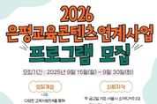 시민행정신문 강갑수 기자 | 서울 은평구는 오는 30일까지 ‘2026년 은평교육콘텐츠 연계사업’ 프로그램을 모집한다고 밝혔다. 구는 이번 공모를 통해 학교 교육과정 및 방과후 활동과 연계가 가능한 다양한 교육 프로그램을 발굴하고 아동·청소년에게 폭넓은 배움의 기회를 제공할 예정이다. 은평교육콘텐츠연계사업은 지역사회의 우수한 교육자원을 학교와 연결해 다채로운 교육 경험을 제공하고 있다. 이번 공모를 통해 모집하는 분야는 총 6개 분야로 ▲문화예술체육 ▲진로체험활동 ▲인성심리정서 ▲창의과학융합 ▲마을탐방 ▲기후생태환경이다. 신청 자격은 아동·청소년을 대상으로 한 교육콘텐츠자원을 보유하고 프로그램 운영 역량을 갖춘 서울시 소재 단체 또는 개인이면 신청할 수 있으나, 영리 목적의 단체 또는 학원은 제외다. 공모에 접수된 프로그램은 심사 과정을 거쳐 최종 선정되며, 선정된 프로그램은 관내 67개 초·중·고·특수학교와 연계해 운영된다.
