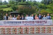 시민행정신문 강갑수 기자 | 전주발전협의회는 23일 효자추모관에서 한부모 가정과 다문화가정, 저소득 가정, 전주함께라면 사업을 추진 중인 전주지역 사회복지관 등에 600만 원 상당의 햇반 150박스를 전달했다. 이번 기부는 명절 연휴를 혼자 보내는 이웃들에게 실질적인 지원을 제공하기 위한 ‘추석맞이 이웃사랑 나눔 행사’의 일환으로 추진됐다. 이날 기증된 햇반은 장기 보관이 용이하고 즉석에서 섭취할 수 있어, 전주함께라면 사업 공간과 저소득 가정에 적합한 물품으로 선정됐다. 장순식 전주발전협의회 회장은 “추석은 가족과 이웃의 소중함을 되새기는 시간”이라며 “햇반이라는 작은 선물이 어려운 이웃들에게 따뜻한 위로가 되길 바란다”고 밝혔다. 전주시 관계자는 “매년 명절마다 지역사회를 위해 나눔 활동을 이어온 전주발전협의회에 깊은 감사를 전한다”면서 “이번 기부가 최근 어려워진 경제 상황 속 이웃들에게 힘이 되길 바란다”고 말했다. 한편 지난 2009년 창단된 전주발전협의회에는 현재 100여 명의 회원이 활동하고 있으며, △어르신 삼계탕 봉사 △백미·김장김치 지원 △명절 지원 사업 등을 꾸준히