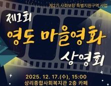시민행정신문 강갑수 기자 | 영도구 동삼동에 위치한 상리종합사회복지관은 오는 12월 17일 ‘제1회 영도 마을영화 상영회’를 개최한다. 이번 상영회는 영도구 세 곳의 마을에서 제작된 단편영화 3편을 주민들과 함께 감상하고, 영화 평론가가 진행하는 관객토크(GV)를 통해 작품의 제작 과정과 마을 이야기를 공유하는 시간으로 마련된다. 상영 작품은 깡깡이 마을의 '명자할매'(2021), 흰여울 마을의 '이송도 블루스'(2022), 상리 마을의 '그 많던 꿀벌은 어디로 다 사라졌을까'(2025) 등 총 3편의 단편영화를 상영하며, 각 마을 주민들과 영화 제작에 참여한 디렉터 및 담당자도 함께 참석한다. 행사를 주최하는 상리종합사회복지관 김영신 관장은 “마을영화 제작 과정을 지켜보며 주민들의 지역에 대한 자긍심이 높아지는 것을 느꼈다”며 “이번 상영회가 영화사업의 성과를 널리 알리고, 문화예술을 매개로 지역 공동체가 주체적으로 펼쳐온 다양한 활동을 공유하는 의미 있는 시간이 되길 바란다”고 말했다. 영도구 관계자는 “상리종합사회복지관은 2024년부터 사회보장 특별지원구역 사업을 추진하며 누구나 살고 싶은 상