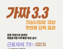 시민행정신문 장규호 기자 | 가짜 3.3 의심사업장 대상 첫번째 감독 결과 - 유명 맛집으로 알려진 대형음식점 6개 매장 대상 실시 · 근로자의 73% 근로자가 아닌 프리랜서 계약 - 4대보험 미가입 - 연차휴가 미부여 - 연장·야간·휴일근로수당 미지급 - 5100만 원 임금 체불 등 → 7가지 근로기준법 위반! 가짜 3.3계약 등으로 인해 제대로 보호받지 못하는 근로자가 없도록 강력한 기획감독을 실시하겠습니다.