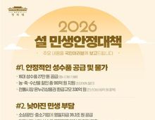 시민행정신문 장규호 기자 | ■ 2026 설 민생안정대책 주요 내용을 국민 여러분께 보고드립니다. #1. 안정적인 성수품 공급 및 물가 · 16대 성수품 27만 톤 공급(평시 대비 1.5배) · 농·축·수산물 할인 총 910억 원 지원(최대 50% 할인) · 전통시장 온누리상품권 환급규모 330억 원(전년 대비 60억 원 증액) #2. 낮아진 민생 부담 · 소상공인·중소기업에 명절자금 39.3조 원 공급 · 전통시장 상인 성수품 구매대금 50억 원 저리 대출(점포당 최대 1,000만 원) · 서민·취약계층·청년층 대상 서민금융 1.1조 원 공급 #3. 관광으로 힐링하는 설 연휴 · 고속도로 통행료 면제(2월 15~18일) · KTX, SRT 역귀성 등 일부 열차 30~50% 할인(2월 13~18일) · 국가유산 및 미술관 무료 개방(국가유산: 2월 14~18일/미술관: 2월 16~18일) 국립자연휴양림 무료 입장(2월 16~18일)