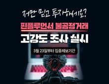 시민행정신문 장규호 기자 | 저만 믿고 투자하세요? 핀플루언서 불공정거래 고강도 조사 실시 - 3월 23일부터 집중제보기간 ■ 금융위원회·금융감독원은 핀플루언서의 불공정거래 행위에 대한 시장감시와 조사를 꾸준히 강화했으며 불공정거래를 다수 적발했습니다. - 텔레그램 주식채널 운영자가 투자수익률을 부풀려 홍보하여 특정 종목 대규모 선행매매 - 증권방송전문가가 추천종목을 사전에 입수하고 종목 추천 직전 선행매매 *핀플루언서(Finfluencer) : 금융(Finance)과 SNS 인플루언서(Influencer) 결합 단어 ■ 핀플루언서 불공정거래 행위에 대해 집중점검 및 고강도 조사를 실시합니다. · SNS, 증권방송 등 주요 정보전달매체를 통해 추천하고 매수세가 유입되면 차익을 실현하는 선행매매 행위 · 중동상황 등 불안한 투자심리를 악용하여 허위사실·풍문을 유포하고 매수를 부추기는 행위 · 회사 경영진과 공모하여 시의성 있는 분야의 허위 신사업 추진 정보를 유포하고 주가를 올리는 행위 2026년 3월 23일부터 집중제보기간을 운영합니다. - 혐의 입증에 도움이 되는 자료 제공 시 불공정