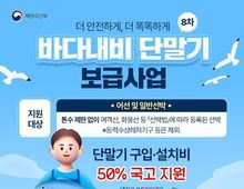 시민행정신문 장규호 기자 | 더 안전하게, 더 똑똑하게 ■ 8차 바다내비 단말기 보급사업 · 지원 대상: 어선 및 일반선박 - 톤수 제한 없이 여객선, 화물선 등 「선박법」에 따라 등록된 선박 ※ 동력수상레저기구 등은 제외 - 단말기 구입·설치비 50% 국고 지원(최대 250만 원) ■ 바다내비 주요 기능 - 충돌·좌초 경보 - 전자해도 제공 - SOS 구조 신호 전송 - 선박-육상 간 영상통화 - 해양 안전 정보
