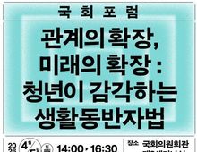 시민행정신문 이준석 기자 | 6 3 지방선거를 앞두고 다양한 청년정책이 발표되는 가운데, 청년 당사자가 직접 청년정책으로서 생활동반자법의 의미와 필요성을 조망하는 국회포럼이 개최된다. 이날 포럼에는 50여 명의 청년 당사자가 참석해 생활동반자법에 대한 의견을 나눌 예정이다. 기본소득당 용혜인 의원과 기본소득당 청년 대학생위원회는 4월 5일 오후 2시 국회의원회관 제3세미나실에서 '관계의 확장, 미래의 확장 : 청년이 감각하는 생활동반자법' 국회포럼을 개최한다. 용혜인 의원은 지난 1월 세상을 바꾸는 청년 캠페이너를 양성하는 ‘링크로스 아카데미’ 3기를 개최하고, 우수 참가자를 대학생특보로 위촉했다. 이번 국회포럼은 대학생특보가 청년 당사자로서 청년에게 필요한 제도 변화를 모색하며, 직접 포럼 기획과 진행을 맡았다. 이번 포럼에서는 용혜인 의원이 직접 위촉한 대학생특보 6인(김다희, 김서현, 나하은, 오채은, 이루리, 한빛나)이 여는 발제를 맡아, 청년의 삶에서 생활동반자법이 가지는 의미를 설명한다. 토론으로는 은둔고립청년 자조모임센터 '두더집' 운영자인 김예림 씨즈 전문위원, 이호림 무지개행동 공