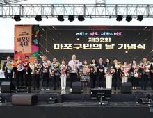 시민행정신문 강갑수 기자 | 마포구는 ‘제18회 마포나루 새우젓축제’의 마지막 날인 10월 19일 오후 월드컵공원 평화의광장에서 ‘제32회 마포구민의 날’ 기념행사를 열고, 지역사회 발전을 위해 헌신한 구민들의 노고에 감사의 마음을 전했다. ‘제32회 마포구민의 날’을 축하하기 위해 현장에는 박강수 마포구청장과 국회의원 등 내빈 약 2천여 명이 참석해 자리를 빛냈다. 이날 기념식에서 마포구 구민상을 받게 된 구민은 총 20명으로, 시상 부문은 문화상(김기중, 최재홍), 체육상(남현, 홍금순, 황재호), 안전·환경상(김기덕, 김옥자, 어숙희), 교육상(박영희, 홍정연, 마포청소년문화의집), 효행·선행상(김경원, 김두경, 김점동), 봉사·기부상(윤남식, 이병석, 전정미), 지역발전상(권경환, 이석구, 조규식)이다. 구민상은 박강수 마포구청장이 직접 시상했으며, 행사장을 가득 메운 참석자들은 수상자들의 이름이 호명될 때마다 박수로 축하를 전했다. 또한 마포구를 빛낸 자랑스러운 수상자들을 위해 마포구립합창단의 축하 공연이 이어졌다. 박강수 마포구청장은 “구민 여러분 한 분 한 분의 헌신과